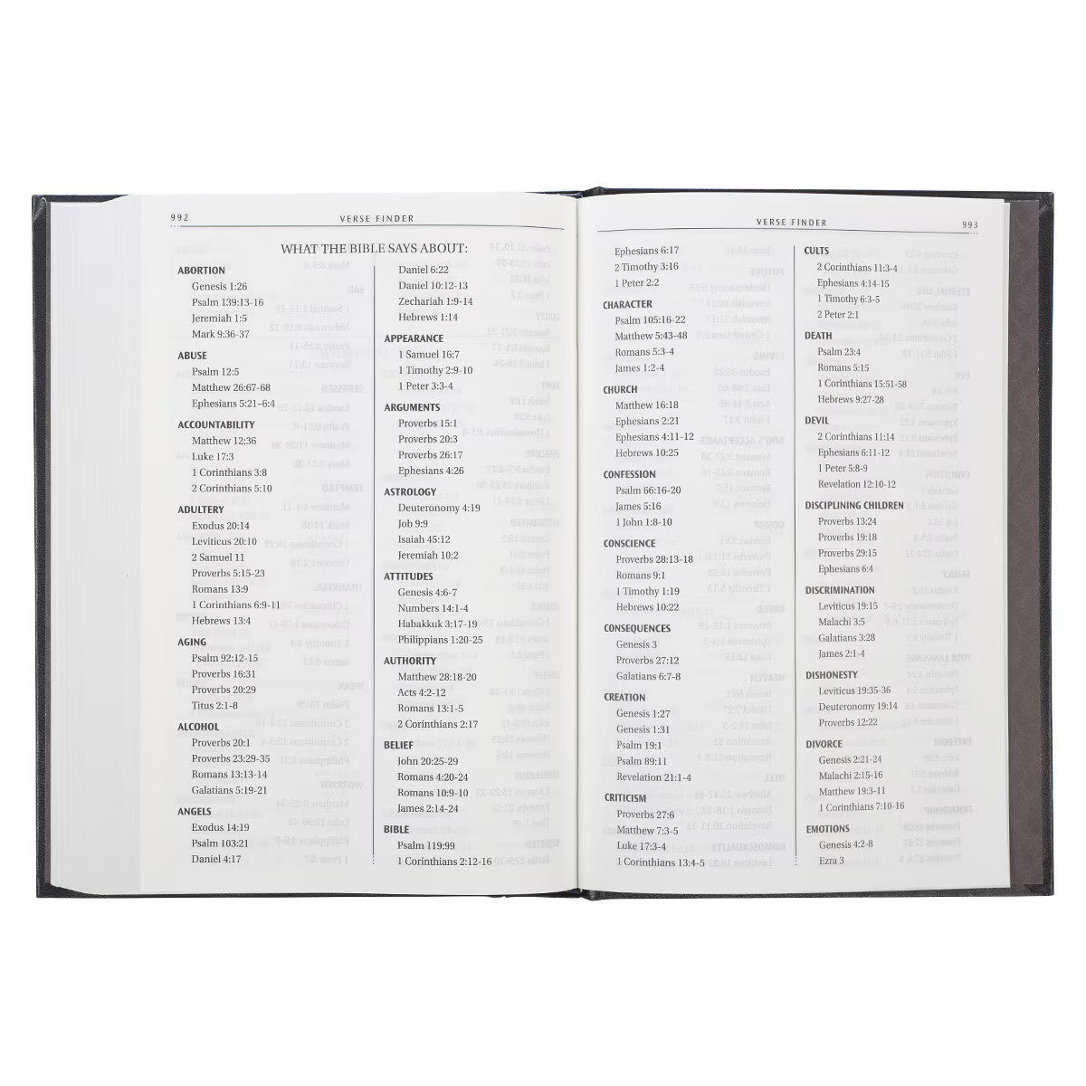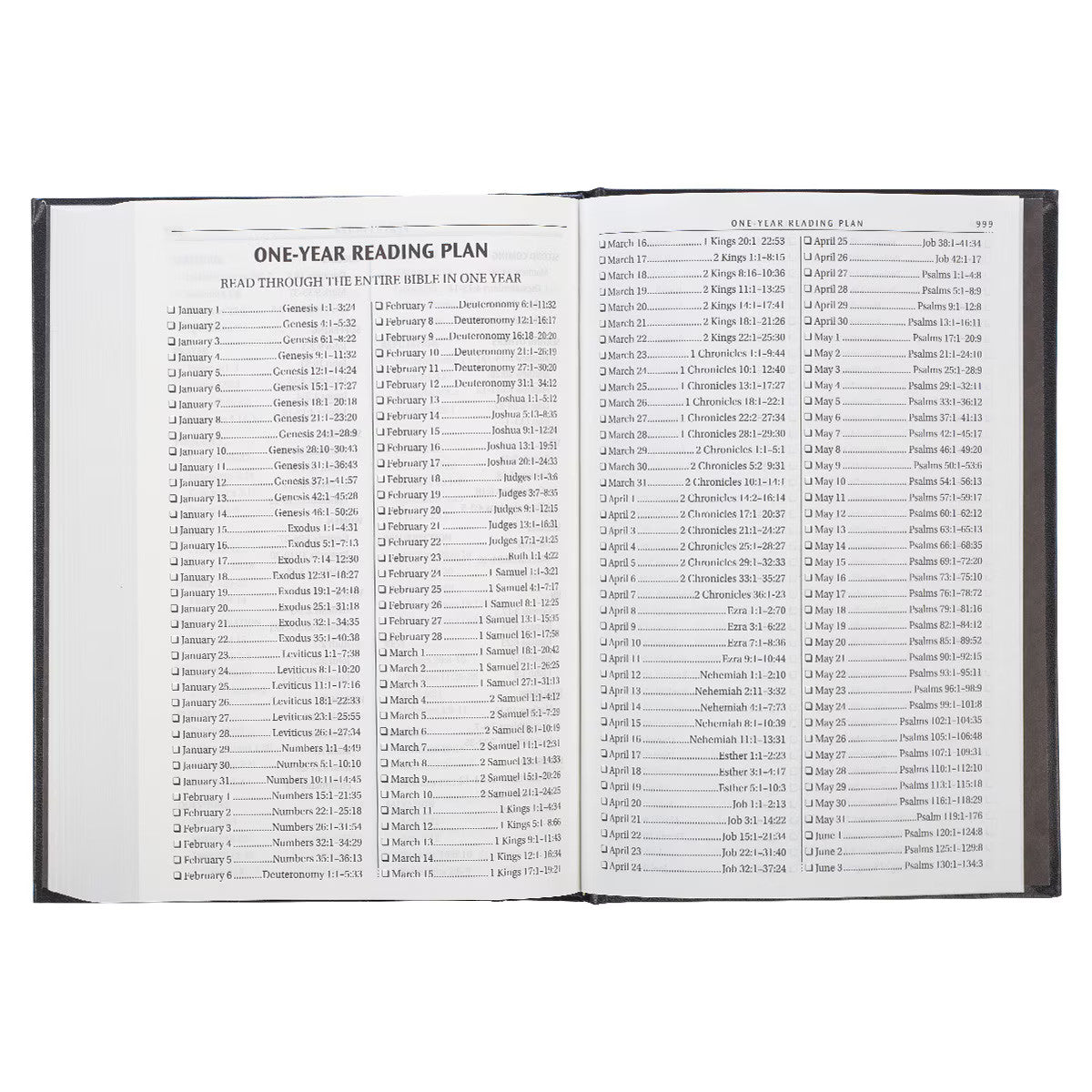 The 10-point type typeface is slightly larger than the standard 8-point type found in most standard Bibles. Reader-friendly subheadings, a double-column format, the words of Christ printed in red ink, a helpful Scripture verse finder by topic, and a one-year Bible reading plan are additional features that make this Bible equally suitable for use in a church pew or your own home.