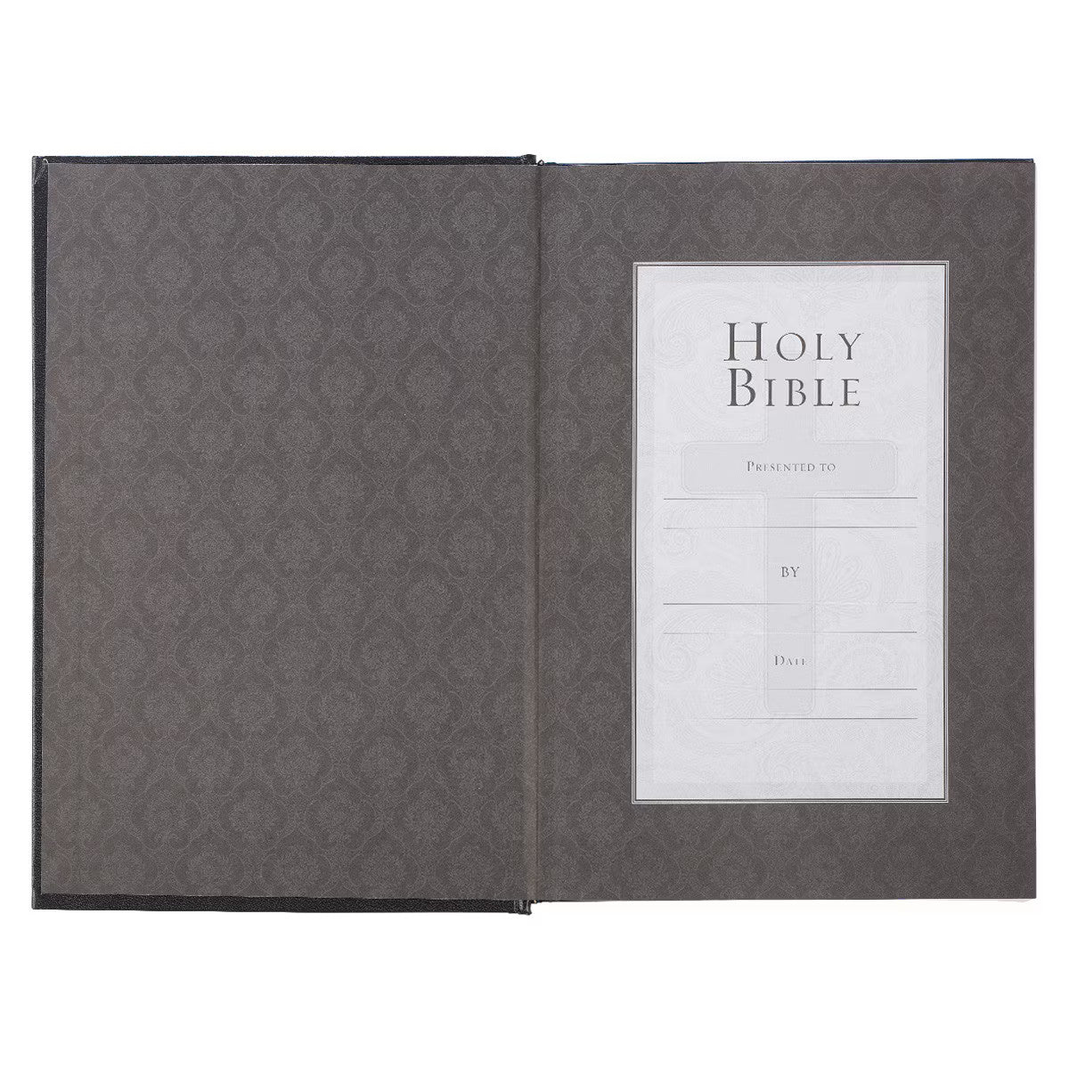 "Durable" is the word that comes to mind when you hold the Black Hardcover Large Print King James Version Pew Bible in your hands. This Bible's construction is sturdy enough to be used for many years as a pew Bible; it's sturdy enough to be taken with you when you travel, and it's sturdy enough to hold up to a toddler's hands —all at a very affordable price.