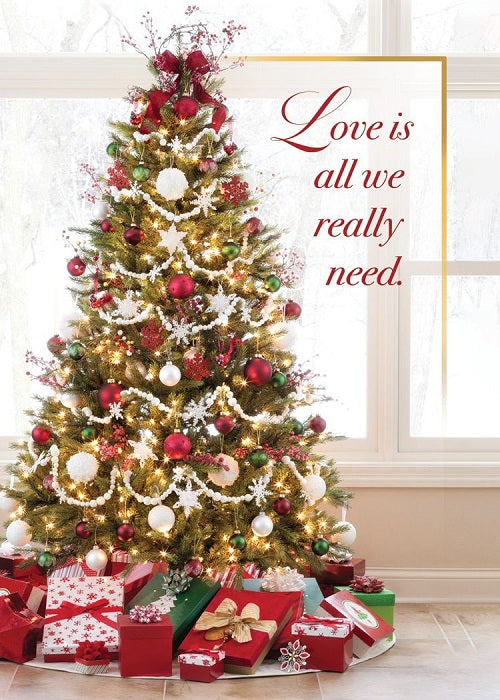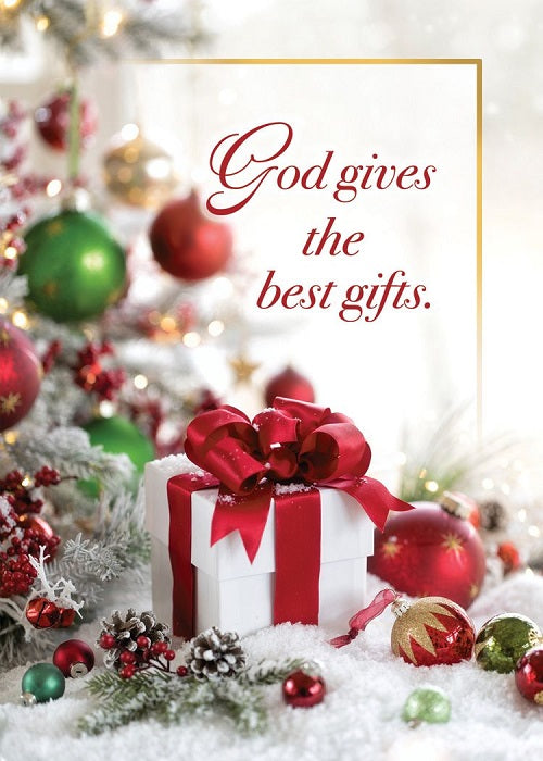 Beautiful Christmas photography captures the warmth and love of home. This assortment of 4 different images includes: traditional Christmas tree with gifts, white gift box with red bow, close-up of red ornament, cozy chair with Christmas pillows. Cards measure 4¾" x 6¾", with 12 cards and envelopes per box, 3 each of 4 designs. Uses KJV Scripture.