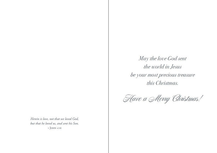 May the love God sent the world in Jesus be your most precious treasure this Christmas. Have a Merry Christmas!