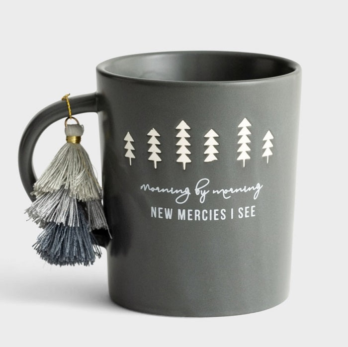 Sip your favorite hot beverage and reflect on God's new morning mercies each day. This gray ceramic mug includes a decorative tassel and is both microwave and dishwasher safe for your convenience. Makes a perfect gift for friends, coworkers, and teachers at Christmas or any time of the year!
