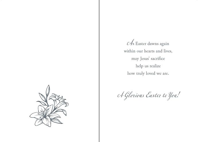 As Easter dawns again within our hearts and lives, may Jesus' sacrifice help us realize how truly loved we are. A Glorious Easter to You!